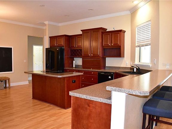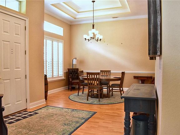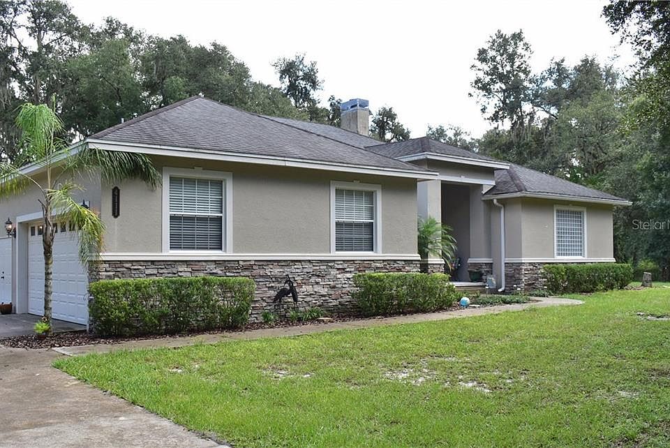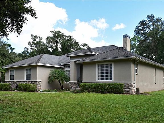 This beautiful three bedroom three bathroom home sits on over two wooded and fenced in acres with no HOA! Come inside to find alluring architecture including 12 foot tray ceilings, crown molding and built-in shelving throughout. A cozy dual fireplace adds to this home's great character! Each room is bright and spacious with plenty of closet space for easy organization. The inviting kitchen and living room offer an open layout with a large breakfast bar in between. The master suite has pool view and access as well as a bathroom which is complete with a garden tub, lovely dual vanities and a tile shower. Retreat out back by the gorgeous in-ground pool, catfish pond or custom built fire pit. This must see home also features a wet bar in the additional media room, an over sized garage, mature landscaping and a gated driveway for added security. This masterpiece will be re-roofed on 12/2/2019 with a 50 year warranty! Conveniently located 10 minutes from I-4. This one won't last long!