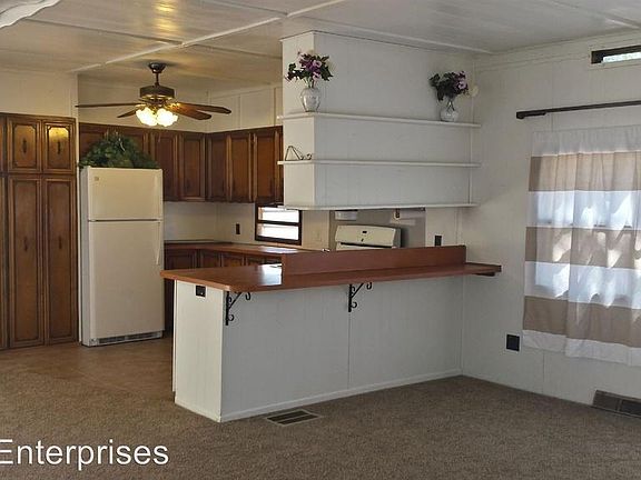 Welcome home. Freshly painted inside and out 3 bedroom 1 1/2 baths Mobile home. All new carpet throughout. Dual sinks in master bath. New stove, dishwasher. Nice Fireplace. Rent 12 x 12 storage unit or work space. New rear patio for the summer BBQ's.
