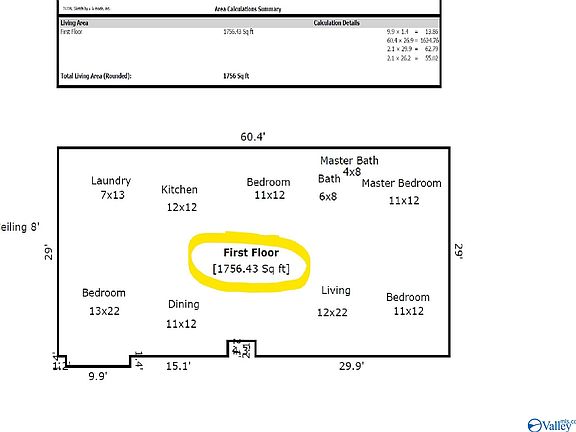 - Total interior livable area: 1,756 sqft