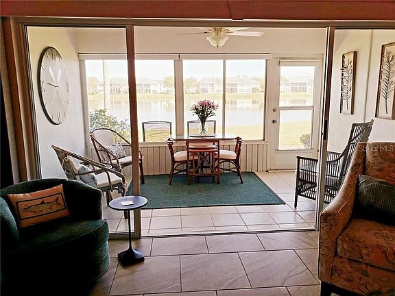 What an Amazing Villa and View! You can't get much better than this! Calming Water to look at in front and in back! Your new Fabulous 2 Bedroom, Den, 2 Bath, 2 Car Garage Florida Home is just steps from all of the Community Amenities. New Windows in 2017, HVAC 2017, HWH 2020, Epoxy Garage Floor 2020, New Kitchen Cabinets 2019, Pantry upgrade, Garbage Disposal, Walk-In Closet Organizers, Vanity in Guest Bath, Freshly painted in 2019, Electrical upgrades, including additional outlets, light in ceiling alcove, under-counter lights in kitchen, and all new fixtures, Beautiful Replaced Closet Doors, and Window Treatments in Living Room and Kitchen. Enjoy the Exceptional View of the Lake through the Enclosed Glass Lanai or relaxing on the exterior Patio! Other amenities include Volume Ceilings, Granite Countertops, 20" tile on a diagonal throughout, Skylights, Breakfast Bar, Large Pantry, and a Paver Walkway entrance into a screened Front Porch. Bathrooms have been updated with tall sinks and replaced toilets, walk-in shower, double sinks, Corian Countertops in Master bathroom, Walk-in Closet and a second Closet, French Doors to the Den. Roof replaced 2012, Garage has a pull-down offering lots of storage, and two Pools at your disposal! Peridia Membership Dues are $869/Qtr and includes your Cable and Internet, Fairway Trace Dues are $971/Qtr and includes Water, Trash, Sewer, Lawn Care, Exterior Maintenance, and a Pool and Clubhouse. This comes out to only $613/Mo for all of this! You should have no problem spending $450/Yr on Food and Beverages, and a One Time Capital Contribution fee of $1,395. Peridia has so much to Offer: Pickleball, Tennis, Golf, Aerobics, Water Aerobics, Card Clubs, Member-Only Events, Holiday Fun Golf Tournaments, Bocce, Large Heated Pool, Tiki Bar, Clubhouse, Pro-Shop, 18 Hole Executive Course, and a very active membership. Come to Peridia and enjoy Florida's Down-to-Earth Country Club Lifestyle offering something for everyone!