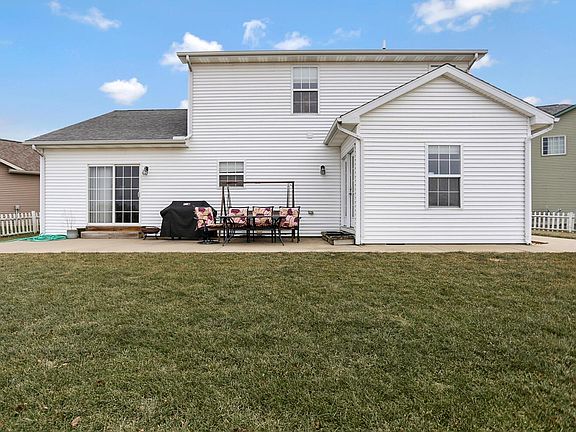 Enjoy the beautiful sunsets and open field views every evening from the back patio of this 1.5 story home located on a private cul-de-sac in a well established Champaign subdivision. Fully fenced backyard. Easy access to Staley Rd and close to the park! Great open first floor plan with cathedral ceiling and fireplace that flows nicely into the dining area and kitchen with custom Birch cabinets - great for entertaining. The oversized primary bedroom suite is located on the 1st floor with walk-in closet, ample room for a sitting area or desk office space, and huge roll-in tiled shower plus it's own private patio door out to the backyard. Head upstairs for 3 additional bedrooms where the room sizes will pleasantly surprise you! Beautiful hardwood floors throughout 1st and 2nd floors. The full basement is unfinished and great for storage, work-out space or plenty of room for a future expansion of a family room and bedroom. A full bathroom already exists! Fully fenced backyard. Schedule a time for a private tour today!