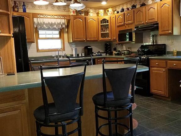 Set well off the road you'll find this perfectly set home tucked away amongst the trees. Custom built and enjoyed for over two decades by the original owners. Enter into the large living room which leads to a combined dining room and oversized custom designed kitchens with an abundance of cabinetry & countertops, 4 seat breakfast bar, windows and natural light. Step out onto the deck and be awed by the picture perfect rear yard. A fenced corral was once enjoyed by the family horse and is still in place for your pleasure. The master bedroom suite has a walk in closet and master bath with a jacuzzi tub to relax in after a long day. A first floor also has a second bedroom, full bath and washer and dryer. The basement could easily be converted to addition living area if desired. The two car drive under garage has a Trane heating unit and custom cabinets which will please any mechanic, handywomen/handyman or gardener.