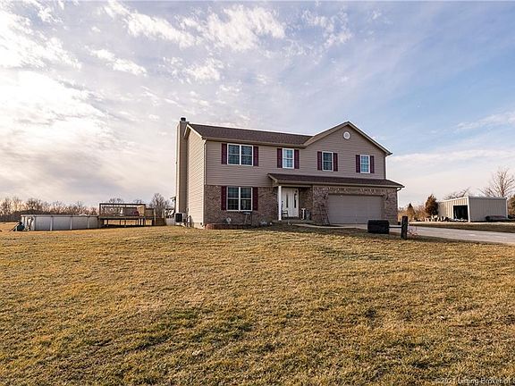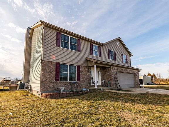 Amazingly BEAUTIFUL home in a country setting on 5 acres. 4 bedrooms and 2.5 bath. 2nd level you will find 20x17 loft/family room with the four bedrooms coming off from the loft. All bedrooms have LARGE closets. Kitchen with appliances, pantry, island and an additional 7x7 butler's pantry. Wood-burning fireplace in the living room. Large den/office with picturesque view. Laundry room on the 2nd level. Mudroom has access to the two-car attached garage. French doors from the dining room to the 12x13 sunroom that has Pergo flooring and a panoramic view. From your sunroom, exit out to the backyard to the above ground pool. Home was built in 2010 with 2x6 walls. Quality built. Only 7 minutes from I-64 in Carefree.