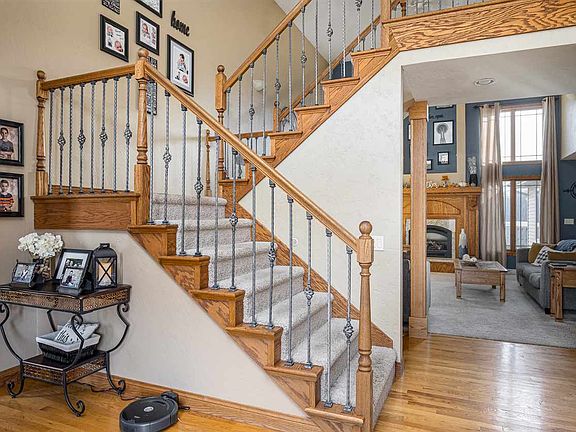 Located on a Cul-De-Sac you will find this soaring 1.5 story home complete with fenced in yard. The first floor features kitchen with center island, granite counters, hardwood flooring, 2-story living room with floor to ceiling fireplace, sunroom, first floor laundry & master with heated floors in the bath. Open staircase. Upstairs find 3 additional bedrooms. 48' deep garage. Partially finished basement with daylight windows. Also included: projector, screen in lower level, shelving in workshop, disposal, fire pit. Newer built in range, refrigerator, dishwasher and landscape stone.