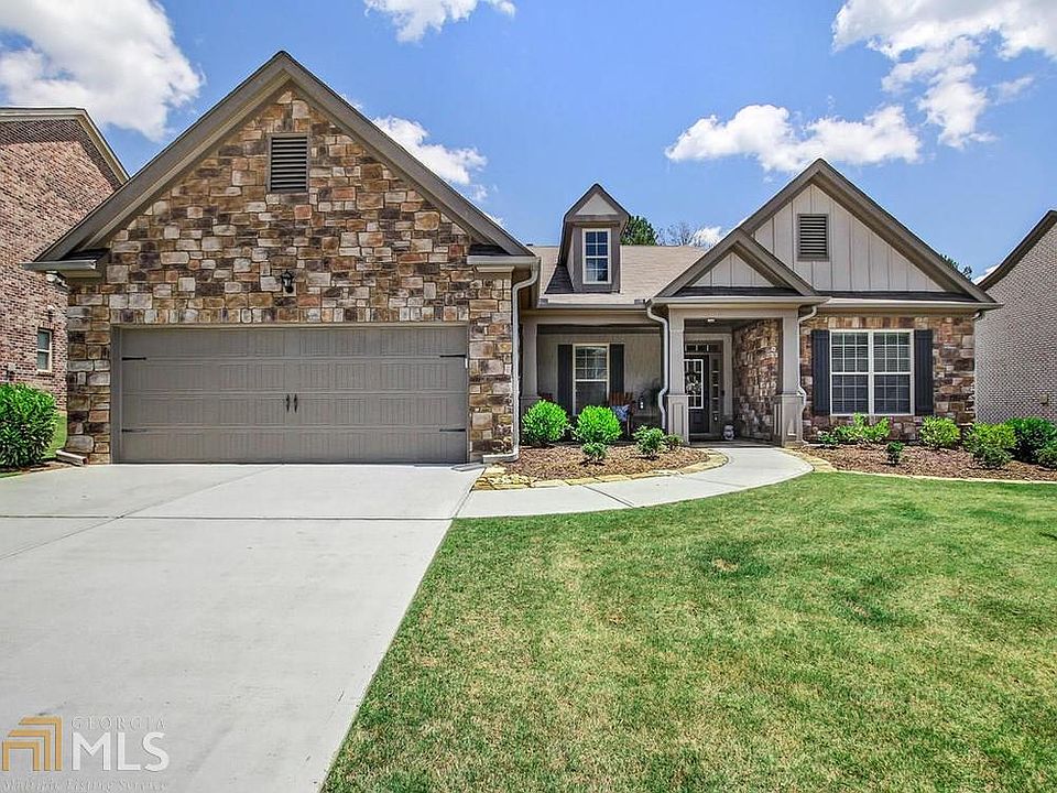 A great home in the City of Buford. The seller hates to leave this beautiful RANCH! A large open plan with lots of extras. Hardwood floors, a great kitchen. Coffered ceilings in the Family room. An oversized Master bedroom with a great Master bath. The outdoor space has an inedible outdoor fireplace and kitchen.