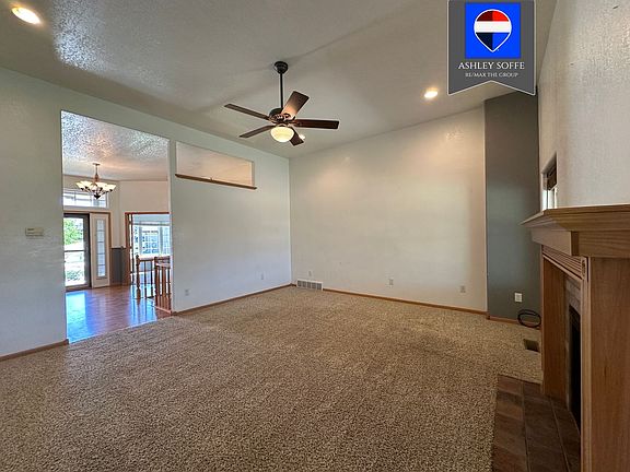 -This ranch-style home includes two bedrooms and an office on the main floor, with an additional bedroom and a theater room downstairs. Ample living spaces include both a living room and a family room.