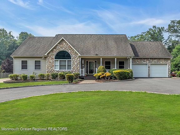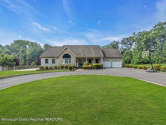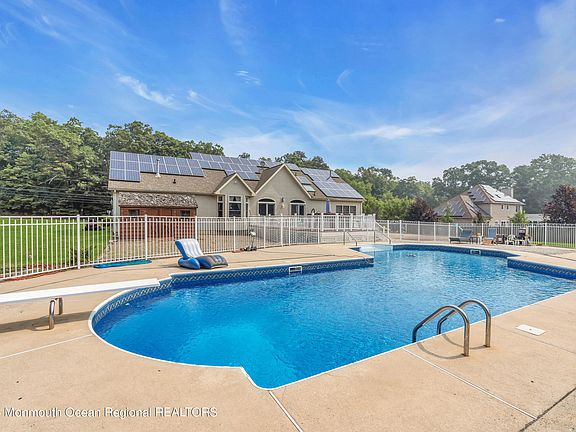 Welcome to a charming 3 Bedroom, 2 Bath ranch house built in 2000 and nestled on an oversized lot in Wall Township, New Jersey. Imagine your own private compound. Situated on over 2 acres the generously sized property provides plenty of space for almost any outdoor activity imagined. The highlight of the private backyard is a fenced in heated pool surrounded by a large patio. A great spot for enjoying warm summer days with family and friends. You'll also find a spacious deck, providing more space for grilling, lounging, watching the fun in the pool, and appreciating the peaceful surroundings. The two wide sideyards offer more recreation possibilities and if that isn't enough there is a hot tub too! Inside, the house features a thoughtfully designed floor plan that emphasizes comfort and functionality. The eat in kitchen and living area offer an open floor plan. 2 sets of French doors open to the beautiful backyard and pool area. A full dining room is convenient for holiday entertaining. The primary bedroom suite has a walk in closet and separate full bathroom. The other 2 bedroom are nicely sized. A full laundry room, a WFH office space, and a pantry/ storage area are conveniently located adjacent to the kitchen. The attached 2 car garage offers additional storage.