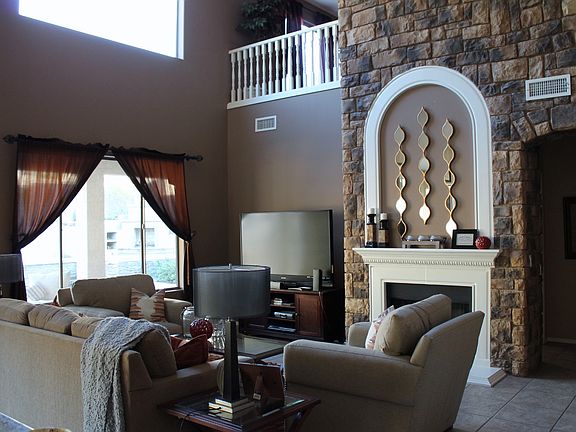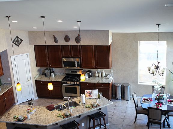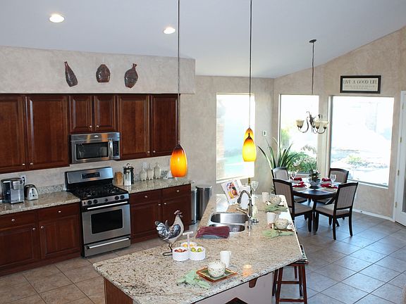 Stunning hillside home backing the mountain preserve features 3114 SqFt with 4 bedrooms, den, 2.5 baths, formal living/dining & family rooms. The gourmet eat-in kitchen features maple cabinetry w/pull-out shelves, granite countertops, stainless appliances, gas range, pantry & island with breakfast bar & custom pendant lighting. The family room has cathedral ceilings & an impressive stone feature wall w/gas fireplace. Sliding doors lead out to the resort-style backyard. You'll love the newly refinished pebble sheen pool with warranty and new pool cartridge filter & heater, spa, water features, wood-burning fireplace, 3-hole putting green, side yard w/dog run & outdoor kitchen with extensive stone work & pergola. The master retreat is on the main level & has private backyard access and an en-suite bath with dual sink vanity, separate tub & shower & walk-in closet. Loft with walk-out balcony, 3 bedrooms & full bath w/dual sink vanity are upstairs. Other features: 3 car split garage w/epoxy floors & service door, RV gate, wood floors, central vac, downstairs laundry with upper/lower cabinets & much more! Community amenities include hiking trails, dog park, playgrounds & sport courts. See today!