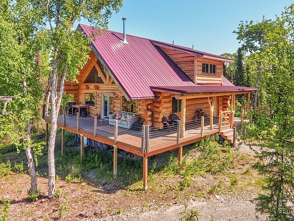 Your Personal PRIVATE RETREAT on 1.85 Acres, w/POND just minutes from Soldotna, CUSTOM GORGEOUS LOG HOME features 3 bedrooms, (1 bedroom Lower Level is Mostly Finished-Could be Family Rm and /or Sep.Bedroom) 2 full Baths w/Glass Work, Office/Den Area by Master Bed. Kitchen has Quartz Counter tops, Porcelain tile though out and Arctic Entry. $2,000 Island Counter top Allowance. Amazing Views!