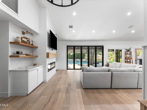 Built in 1992 and Reimagined in 2023 by acclaimed designer Melissa Owens, this exquisite estate embodies refined living and modern elegance. Set on nearly half an acre, the home blends timeless design with state-of-the-art upgrades, offering the perfect retreat for today's discerning buyer.Step inside to discover engineered hardwood flooring flowing seamlessly throughout an open, light-filled layout. Soaring vaulted ceilings with custom recessed lighting create an airy, sophisticated ambiance, while every system—electrical, plumbing, HVAC, and furnace—has been completely renewed for lasting peace of mind.The heart of the home is the chef's kitchen, a culinary showpiece featuring premium appliances, custom cabinetry, expansive quartz counters, and a fully appointed butler's pantry designed for effortless entertaining.Each of the redesigned bathrooms evokes a spa-like experience, showcasing sleek finishes, designer tile, and modern fixtures. The home's architectural statement continues with expansive accordion glass doors, inviting seamless indoor-outdoor living and opening to the generous grounds beyond. Nestled within one of Palmdale's most exclusive gated enclaves, this residence offers security, privacy, and prestige—all while being surrounded by lush landscaping and the promise of unforgettable gatherings.