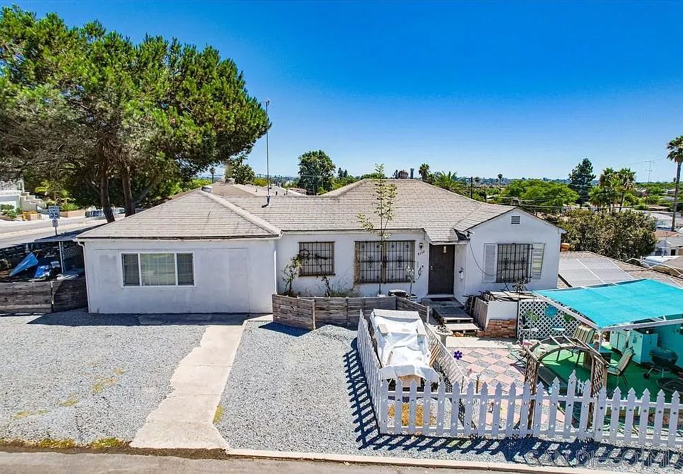 Ideal convenient location close to schools, shopping, 94 and 8, as well as SDSU. The flexibility of this property awaits. Investor friendly property is ready for your improvements. Perfect for fix and flip, buy and hold, and adu value adds. The footprint of this home is already useable with a single level original home with hardwood hidden under the carpet. This original area of the home has a 3rd bedroom converted/opened to kitchen as an office currently and a full bath. The garage was converted to a primary bedroom with ensuite bath prior to owner's purchase. Former covered patio is currently a fully enclosed storage and laundry area which would make a great adu set up with separate entrance. There is a large walk out basement which could make some interesting living space. The detached garage is currently storage and houses leased solar panels (approx $130/mo). Tankless water heater. The large lot provides flexibility for more construction, storage, privacy, parking, boat and rv storage. Corner lot and alley access help with endless possibilities. Mature fig tree and meyer lemon. Secure access along alley. The condition indicates a cash purchase and buyer must see property prior to making offer. Seller does not intend to make repairs nor improvements prior to sale.
