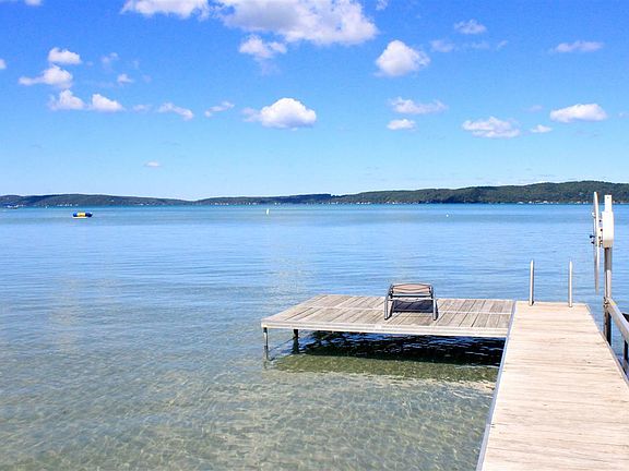 This charming cottage has 45' direct private frontage on the beautiful Crystal Lake. Enjoy natural light, an open floor plan, and gorgeous views on a premier all sports lake. Features include cathedral ceilings, wood floors, quartz counter tops, wood burning stove, central air and forced air heat. 1991 renovation replaced all but one wall of the original structure. Second story loft, bedroom, and bath added in 2004.
