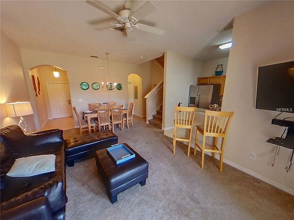 Welcome to Regal Palms, a 24-hour guard-gated, resort community. Fully furnished 3 bedroom, 3 bath unit. Granite counters and solid wood cabinets in kitchen and bathrooms. Stainless steel appliances in the kitchen. Open kitchen and living room area, perfect for entertaining. Fully furnished and tastefully decorated. One bedroom on the first floor, with separate access door, so that the suite can be rented separately. Remaining bedrooms on the second floor. The community features the following: expansive clubhouse; Banana Jackâs Family Restaurant & Arcade; fitness center; spacious resort pool with water slide and lazy river, zero-entry pool; sand volleyball court; pool-side tiki bar. The monthly HOA also includes grounds maintenance, pest control, cable TV, and wifi. The Central Florida Attractions are all just a short drive away! Short term rentals permitted.