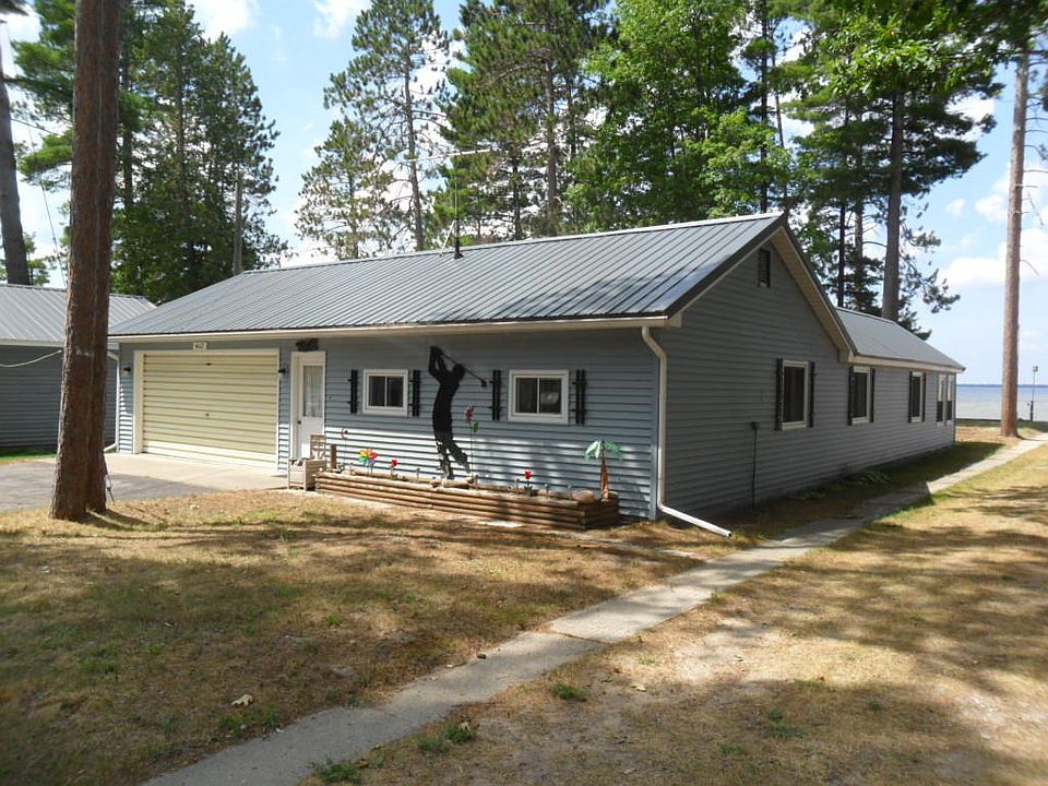 50 feet of sandy black Lake frontage awaits you at this year-round home, with fabulous sunset views. There are 2 bedrooms, plus a heated bunk/sunroom lake side with direct access to the 9 x 9 covered lakeside porch,a black top drive with drive-thru garage, and two very solid sheds sheds. There are many fine kitchen cabinets and lazy susans. The steel roof and vinyl siding were done in 2008, New well pump in 12, pressure tank in 10,and the septic lift pump in 12. The home is in move in condition, just waiting for you to begin making your own memories at this lakefront home