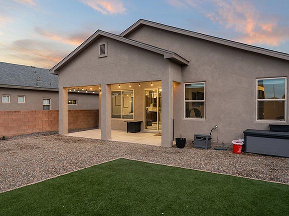 Excellent opportunity in Mountain Hawk Estates! The spacious and open floor plan, seamlessly connects the main living spaces for easy flow. High ceilings add a sense of spaciousness for the four well-appointed bedrooms and two bathrooms. The chef's kitchen is designed with efficiency in mind. Open kitchen to living area concept makes for a perfect hosting area for social gatherings or simply keeping an eye on activities while preparing meals. Enhanced with a large granite island, stainless steel appliances, and a gas cooktop. The exterior provides a generous yard with ample space for outdoor activities. Featuring synthetic turf, and full landscaping in the front and back. Easy access to ABQ, Santa Fe, 550 and I-25. The home will not last long - Schedule your showing before it is gone!