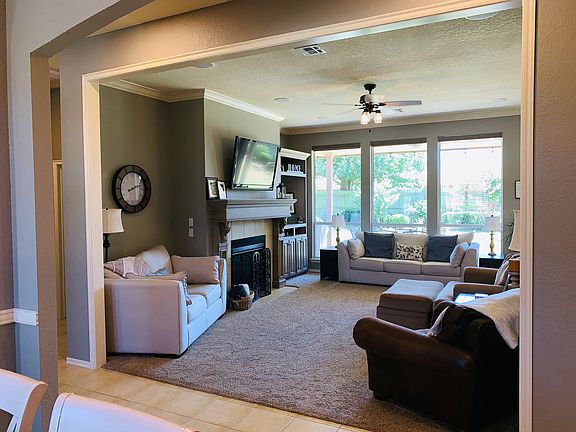 Inviting home in Cascade Estates! This open floor plan has 4 bedrooms, 2 baths, and a 3 car garage with a storm shelter. 4th bedroom has a built-in desk and could be used as an office, workout room, or guest bedroom. Spacious master with walk-through closet that contains generous storage space. The kitchen has under cabinet lighting and plenty of storage. The living room has a gas fireplace and surround sound that will convey with the home. The lighted patio boasts plenty of entertaining space and two speakers to stream your favorite music. The backyard has extensive landscaping and great views of nearby mature trees. This home has composite plantation shutters throughout, and auto-drop window shades along the rear windows. Feel secure with the alarm system and the 4 security cameras that are watching the property 24/7. Very quiet street with exceptional neighbors. Walk to the neighborhood pool or to school! This home has been professionally cleaned every month for the last 5 years.