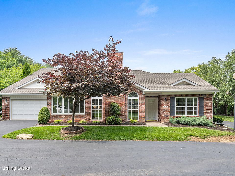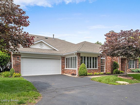 Welcome to this beautifully maintained and hard to find 3 bedroom, 2 full bath patio home located in a peaceful and quiet community. This home offers maintenance-free living in a super convenient location near Gene Snyder, dining, shopping, and churches; a perfect blend of tranquility and accessibility. Step inside to find a spacious living room with a cozy fireplace, perfect for relaxing or entertaining which opens to the large formal dining area. The spacious kitchen includes pull-out shelving in both the pantry and cabinets, and it opens to a bright sunroom that adds even more comfortable living space year-round. The primary suite with huge walk-in closet has been thoughtfully updated with an extended walk-in shower (2022). The 2nd bedroom with walk-in closet has direct access to full bath that can also be shared with 3rd bedroom, which would make an ideal den or office. Additional upgrades and highlights include: new HVAC system (2025), new dishwasher (2025), new gutters scheduled for installation (June 2025) already paid for by seller, hardwood flooring added to two bedrooms (2022), new hot water heater (2021), roof replaced (2023) additional insulation added to the attic and sunroom, cedar-lined closet for enhanced storage, laundry room with cabinetry with washer and dryer to remain and MORE! The oversized two-car garage is heated and air-conditioned, offering extra space perfect for a craft room or woodworking area, complete with a utility sink. Pull-down steps in garage provides easy attic access for additional storage. This rare gem is move-in ready, offering the ease of condo living without sacrificing space, storage, or comfort. This unit is located just steps from the clubhouse. Don't miss your chance to own this meticulously cared for home in a quiet, friendly neighborhood that truly has it all.
