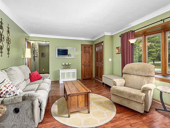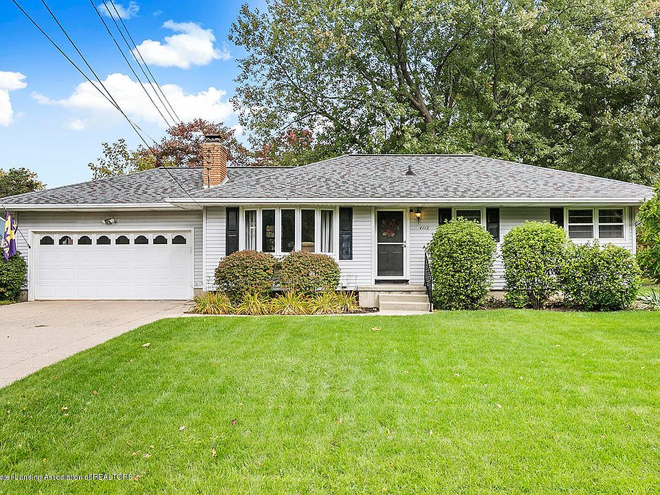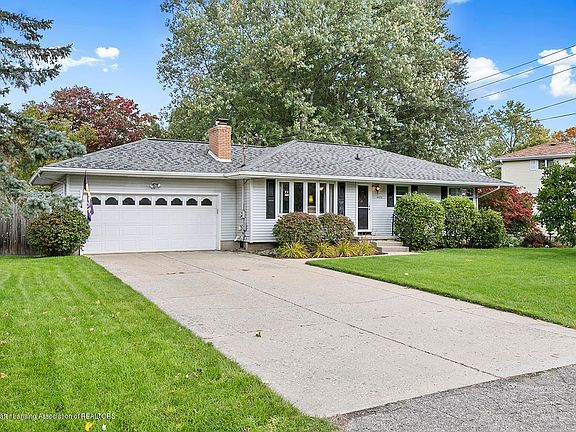 Welcome to this well maintained and cozy 3 bedroom 2 bathroom ranch style home in Delta Twp. The main floor features a spacious living room with gas fireplace, eat-in kitchen with built in wine rack and a formal dining room with a slider out to the backyard. Also on the main floor, you will see the master bedroom is accommodating with a large closet, a second bedroom and full bath. The partially finished basement includes a 3rd bedroom with egress, full bath, entertainment space, and newly installed carpet. The large backyard has 2 storage sheds and has been beautifully landscaped and well maintained. The cement patio is perfect for entertaining family and friends. This house is a must see in a quiet neighborhood, yet close to shopping and restaurants.