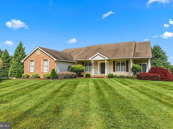 GORGEOUS CUSTOM BUILT RANCHER!!! Located on over 2 Acres!! No Hoa here ... Country living at it finest !! Home backs to farmland that is in preservation so it will never be developed! The view is amazing with lovely sunrise/sunsets from the awesome rear covered deck with ceiling fans, skylights, trex decking & vinyl rails or sit on the wrap around Front Porch. There is an oversized 2 car side load attached garage with lots of storage and brand new Epoxy garage floor thats looks great!!! As you enter the inside you will see the beautiful open floor plan this home has to offer with hardwood flooring, Fireplace in Living room, features Library/Den, Dining room & Kitchen with gorgeous classic quality maple, cabinets, granite countertops stainless steel appliances, breakfast room with bay windows that overlook farmland, New custom valance & cornice, sliders to deck, huge laundry room/ mud room area with New Samsung Washer & Dryer, New laminate flooring. New ceiling fans & light fixtures, Fresh New neutral paint, Some New carpet, Master bedroom suite is on the west side of the home with a huge master closet, large soaking tub & shower with french doors to side porch! The other 2 bedrooms are located on east side of home with large closets and full bath! Lower level is massive and has plumb in/room already for bath and walk out sliders to rear. Could make a great in law suite!!! Great location!!! Beautiful Home!! sign posted / professional pictures to follow...
