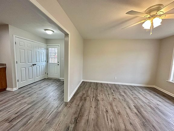 This charming Eastside home boasts a full brick exterior, giving it a classic and durable feel. Upon entering, you'll be greeted with a fully remodeled interior, including a new kitchen with stainless steel appliances, recessed lighting, and ample cabinet space. A separate laundry pantry is equipped with washer and dryer hook-ups, making laundry day a breeze. The luxury vinyl plank flooring and newly carpeted bedrooms will be easy to keep clean. The home features 3 bedrooms and 1 bathroom, offering nearly 1,000 sq ft of living space. The bedrooms are bright and spacious, perfect for relaxing after a long day. Double pain vinyl windows provide plenty of natural light and energy efficiency, keeping your home comfortable all year round. The backyard is fully fenced, offering privacy and a safe space for kids and pets to play. There's also off-street parking available on the freshly graveled driveway, ensuring you always have a spot for your vehicle. With so many updates and amenities, this home is the perfect place to call your own.