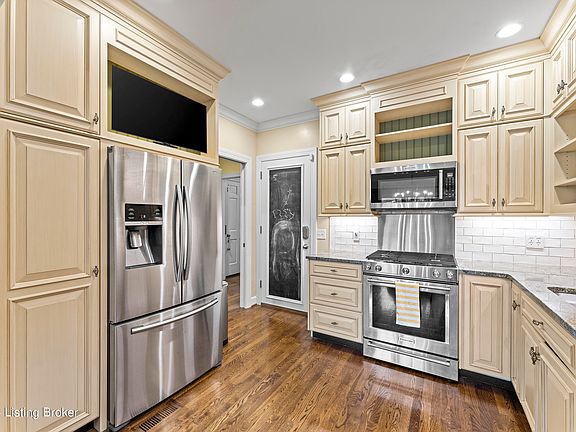 Stunning updated townhome in an amazing location! Experience maintenance free living in the heart of St Matthews with this three bedroom, three and a half bathroom condo in Ridgeway Square. Fully renovated and meticulously maintained, this home has it all, including a private elevator! Upon entry you are greeted with the gorgeous hardwood floors that run throughout the entire home. To your right is your new study complete with a half bathroom. Continue down the hall to the custom kitchen with beautiful granite countertops, gas range, and plenty of storage in your finely crafted cabinets. A large opening leads you into the formal dining room with glass sliders to your private slate stone patio. The great room rounds off the first floor complete with fireplace and built in shelving. Choose a quick elevator ride, or the stairs, to take you up to the second floor. Upstairs you will find two large bedrooms, a full bathroom, and second floor laundry for that added convenience factor. The ensuite is truly a must see. The spacious primary bedroom is a wonderful retreat with built in shelves and entertainment area, or enjoy the view of the luscious greenspace behind the residence. Storage and closet space is abundant with 3 large custom closets as well as another custom closet in the primary bathroom. The split primary bathroom allows for extra privacy with the double vanity and closet separated from the floor to ceiling walk-in shower and restroom. Back down the elevator (or stair) takes you to the basement with extra living space. A finished den with fireplace adds yet another space for entertainment. The storage continues with two storage closets in the mechanical room, as well as a large unfinished laundry room. This unit also has a single car attached garage and additional parking to the side of the driveway. Contact your agent today and request a showing!