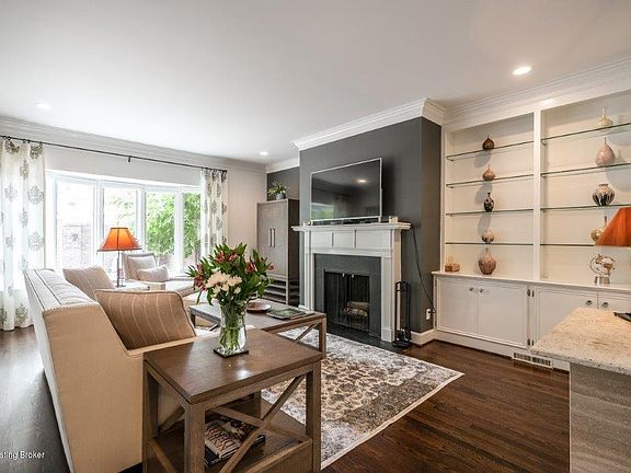 Gorgeous renovated townhome in St. Matthews...a decorator's dream! This stunning home features an open floor plan, hardwood floors, tall ceilings, neutral colors and an abundance of natural light. The kitchen has custom white cabinets, honed granite countertops, breakfast bar, induction range, stainless steel appliances and opens up to a large dining area. Off of the kitchen you will find an outdoor living space with a brick and stone private courtyard patio. The courtyard is maintenance free. The family room has a wood burning fireplace with a custom mantel, elegant custom built in shelves and a large bay window overlooking the courtyard. The den or office provides a wall of shelves, custom cabinets and a pocket door for privacy. The large window provides a view of the front garden entry. The powder bath completes the first floor. Upstairs your will find an inviting Master Suite with a beautiful master bathroom with stylish his and her vanities with marble countertops and designer finishes and a large shower. There is a conveniently located washer and dryer as well as another updated full bath. Two additional bedrooms and ample closet space complete the upstairs. The partially finished basement has a fireplace in the guest area, a half bath, office space, and unfinished storage area. A chairlift for the unit is stored in the basement. With only 10 units total, the neighborhood is quiet and welcoming. Conveniently located near shops restaurants and sidewalks. Wonderful location! Move in ready. Make this house your home.