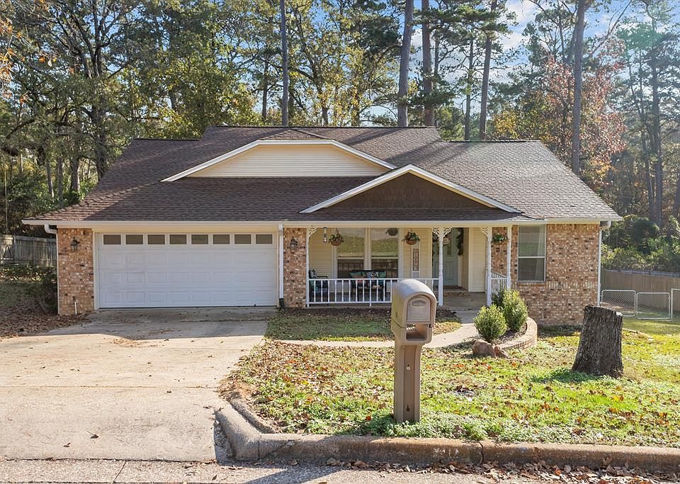 Welcome home to this charming brick property nestled on a spacious, tree-shaded lot in one of Nacogdoches' most peaceful neighborhoods. This 3 bedroom, 2 bath home offers inviting curb appeal with a wide front porch, landscaping, and a generous driveway leading to a two-car garage. Inside, you'll find a comfortable layout perfect for everyday living, while the large wooded backyard provides a serene, private atmosphere for relaxing or entertaining. Families will love the convenient access to the nearby community splash pad—perfect for warm East Texas days. A quiet setting, beautiful mature trees, and a welcoming home—this property truly has the best of Nacogdoches living.