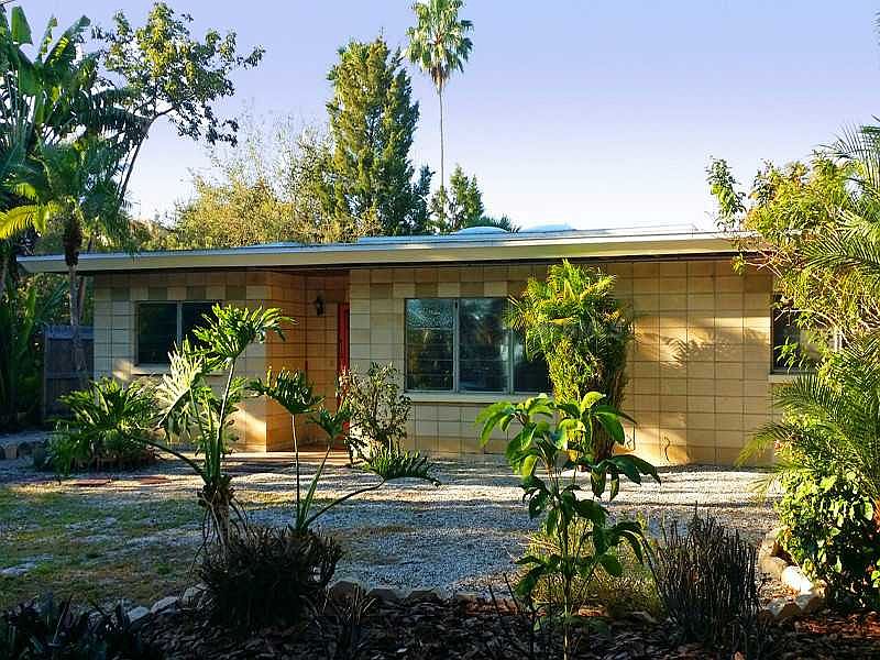 Walk to the Beach from this unique mid-century modern Sarasota island-style beach house, with vintage details that evoke the Sarasota School of Architecture period. Generous lot size 8,438 s.f. affords adding more living space and a swimming pool to existing structure, or the property has been approved for building a new island dream house. Look inside and you'll discover under recently installed tile and carpeting a beautiful black speckled, white-ground terrazzo floor which extends beyond the interiors and across the screened-in lanai. Large, sliding walls of glass, original built-in kitchen, exceptional bathroom tiling, and solid red cypress built-in bookcase in living room will warm your heart. Ride bikes to charming Siesta Key village shops and restaurants, and to world-famous Siesta Key beaches, including Shell Beach, just a few blocks away. This tucked-away section of Roberts Point Rd is quiet, filled with million-plus dollar homes, and considered one of Sarasota's finest residential neighborhoods. Bring your architect, designer or builder and come imagine the possibilities! Owner Financing Available - call for terms.