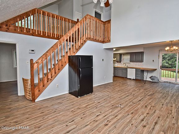 Property is Under Contract and considering back-up offers only at this time;3bd/2ba Contemporary nestled in a STR-FRIENDLY COMMUNITY. Located in a fantastic area close to major highways, shopping centers, & attractions like Kalahari, Camelback, & Mt Airy Casino. The Living Room has a FLOOR-TO-CEILING FIREPLACE for those colder months. The Dining Area has sliders leading to a LARGE DECK, ideal spot for outdoor entertainment. The Kitchen has butcher block counters & ample cabinet space to make cooking a breeze. The 1st floor hosts a Primary bd w/ a jack&jill bth w/ a JETTED TUB for unwinding. Upstairs has 2bds, 2nd full bth, & versatile loft area, for creativity & personalization. This home also has a 1-car garage & situated in a PEACEFUL CUL-DE-SAC. Don't miss out!