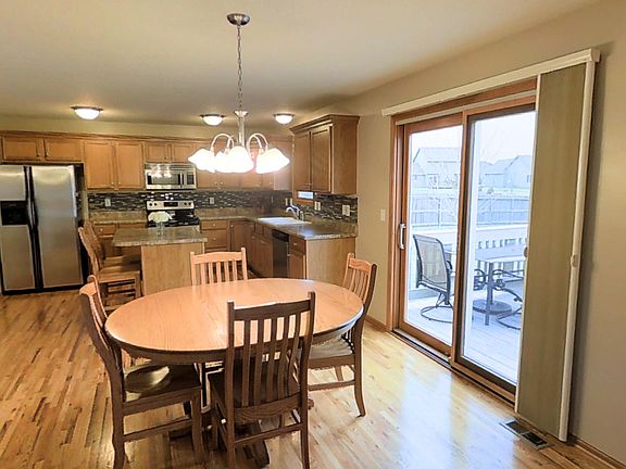 Spacious Strahan 2-story in Ankeny's Camden West neighborhood. Great family-friendly floor plan with 5 bedrooms and 2.5 baths. Welcoming 2-story entry, beautiful eat-in kitchen with center island, stainless steel appliances and hardwood floors. Main floor also features a family room with gas fireplace, formal dining room/den and laundry/mud room off the kitchen. The master suite boasts his/her closets, bath with double sinks, jet tub and custom tile work. Sellers have made several upgrades including a completely finished lowers level with family room and 5th bedroom, hobby area, storage, irrigation system and privacy fenced backyard. The garage has a work area and lofted storage. Minutes from Saylorville Lake and Ankeny Prairie Trail Elementary. Call today for a private showing.
