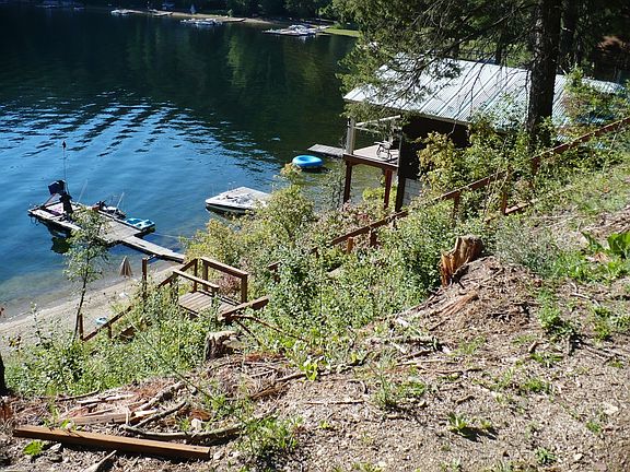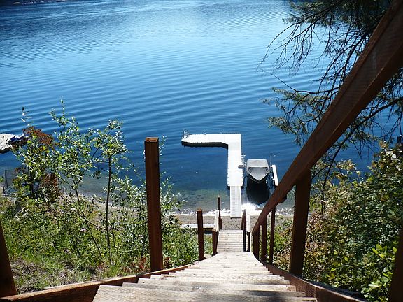 Hard to find Deer Lake waterfront lot with so many "must have" amenities already in place! 65' of sandy, deep water beach. Large EZ Dock + separate solar boat lift. Newer stairs to high quality beach shed at the water line. Stevens PUD public water meter installed on property, Avista power and public sewer are available for hook up nearby. Building site has been cleared so you can build your dream cabin. Room to excavate for additional parking or shop.