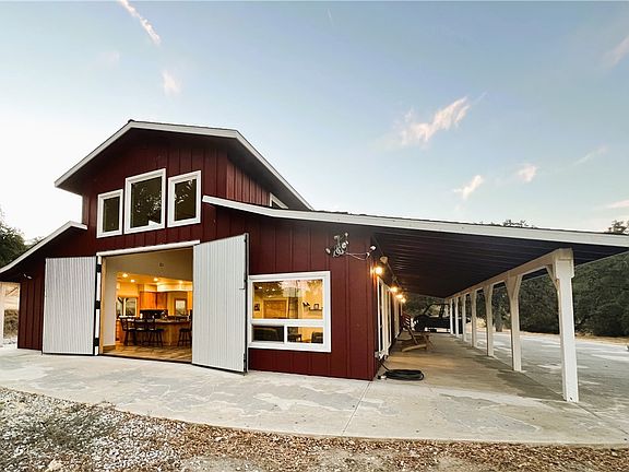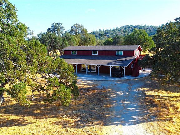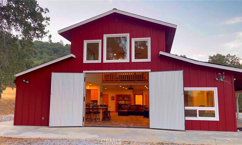 At the gentle base of the local landmark known as Indian Peak in Mariposa County, stands an Amazing Custom Built, 3,388 sq. ft. Barndominium on 400 Peaceful/ Private Acres, the likes of which few have ever seen; This is where modern industrial features meet the simplicity of comfort, and where the exceptional local craftsman, Tobey Guenthart, in collaboration with the current owners, built a recreational masterpiece: Large, double doors allow the scenic outdoor environment to permeate throughout. From the exquisite cement tile flooring to the large, industrial style fan, everything in between was designed with an open concept floorplan, complete with large picture windows adorning the sides. Custom concrete counter tops compliment the entire kitchen, including the large 6’ X 9’, island. Gorgeous Alder was used to showcase the custom kitchen cabinets, as well as all the trim & baseboards throughout. A professional Chef couldn’t be more at home cooking on the large, impressive “Viking” 8 burner stove with 2 ovens, while utilizing the enormous, walk-in pantry & sizeable stainless-steel refrigerator. Bring out the popcorn & enjoy a movie on your own private big screen, complete with projector. Beyond an entire wall of built-in, storage closets encased in classic Alder, on down the wide hallway lies the private master bedroom with full bath. The spacious loft offers a large bonus room, a bedroom, & a half bath. It was the current owner’s vision to create a low maintenance, recreational focal point for friends & family to congregate. With that in mind, they designed an entire bathroom suite for those camping in the 3 nearby RV spaces with full hookups. Campers would have at their disposal, a large dressing room, complete with a double sink vanity, 2 shower rooms, & 2 toilet rooms. Outside, the campers can enjoy the hot tub or gather around the fire pit. Historically, a second home on the property dates back to 1975 when Justice Mueller owned the property; he built a 1,490 sq. ft., 3 bd., 2 ba. Ranch style home constructed of adobe bricks, giving it lots of charm & character. The beautiful acreage itself, 400 to be exact, starts out around 2,000’ elevation & rises to 3,083’ at the top of Indian Peak. The scenic views will leave you speechless. Perimeter fenced with 2 licensed stock ponds, there are roads/ trails encompassing the entire property. From the gentle rolling meadows to the towering mountain top this secluded property offers endless possibilities.