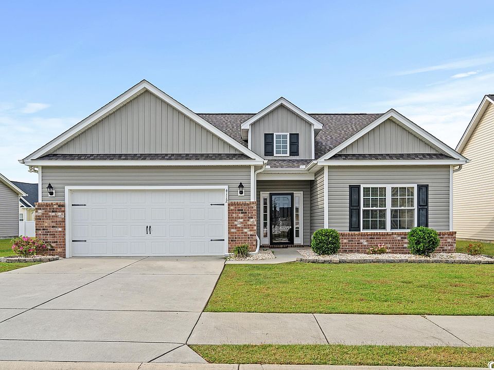 Welcome to this stunning residence that epitomizes the perfect blend of elegance and comfort. This home boasts exceptional curb appeal, characterized by its charming brick accents, white stone landscaping, a welcoming street lamp, and sidewalks that invite leisurely strolls through the neighborhood. As you step inside, you'll be immediately captivated by the open floor plan and spacious design. The large living room, with its rich, warm-toned flooring, vaulted ceiling, and an elegant ledge for decorative displays, sets the tone for a cozy and inviting atmosphere. Natural light floods the room, creating a sense of warmth and serenity. The heart of this home is undoubtedly the generously-sized eat-in kitchen, which is a true chef's delight. It features a delightful bay window, perfect for savoring your morning coffee, a practical breakfast bar for casual dining, a natural gas range that caters to culinary enthusiasts, stainless steel appliances, and a sizable pantry that ensures plenty of storage space. The master suite is a tranquil retreat complete with a tray ceiling and ceiling fan for comfort. A spacious walk-in closet ensures your belongings are neatly organized. The private bathroom is a sanctuary of comfort and luxury with a transom window for natural light, a large shower with convenient seating, dual sinks, and a linen closet for extra storage. The additional two bedrooms are located towards the front of the home and share the second full bathroom, making this property perfect for families or guests. Each bedroom provides ample space, natural light, a ceiling fan, and closet. The appeal of this property extends beyond the interior. Off the living room, a generous enclosed porch with large windows offers a versatile space that can be enjoyed year-round. Whether it's for your morning coffee or a quiet evening reading, this space is a treasure. From the porch, step out onto a patio that's perfect for grilling and hosting gatherings. Beyond the patio, you'll find a spacious backyard with endless potential. Imagine creating your personal oasis or crafting an entertaining space that is uniquely yours. This home offers a harmonious blend of aesthetics and functionality, making it the perfect place to call home. Low HOA to cover the maintenance of common areas in the community. Your Rivertown Row address, conveniently located between Conway and the Atlantic Ocean, generously grants you close proximity to all the attractions and amenities of Myrtle Beach, including fine dining, world-class entertainment, ample shopping experiences along the Grand Strand, and Conway’s antique shops, local eateries, and the River Walk. Rest easy knowing you are only a short drive from medical centers, doctors’ offices, pharmacies, banks, post offices, and grocery stores. HOA information has been provided to the best of our ability. All information should be verified and approved by buyer. Square footage is approximate and not guaranteed. Buyer is responsible for verification.