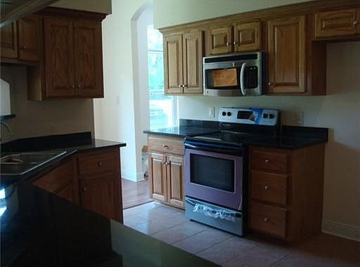 Wonderfully renovated four bedroom two bath home with tiled foyer; beautiful hardwood floors, ceiling fans and recessed lights in great room; kitchen with tile floors and see throughs to the den, granite counters,stainless appliances; large master bedroom, master bath with tile floors and double vanities; arched opening to dining room with wood floors, two arched windows on exterior front, almost one acre lot (.93), flood zone X,easy to see