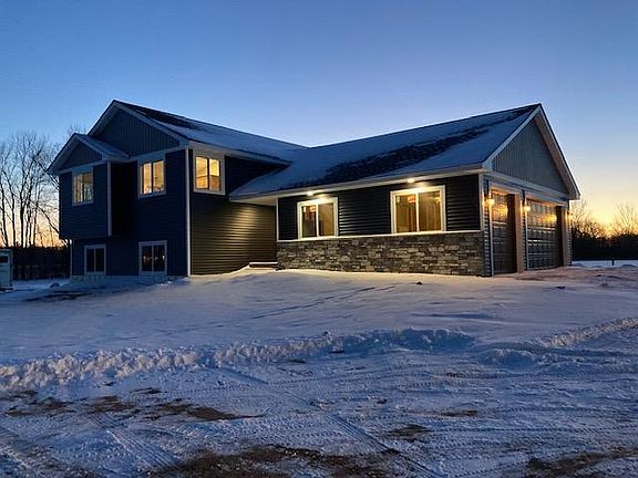 To be built 3BR/1BA on 7+ acres close to Wild River State Park and Sunrise River. Attached 3-car garage, very popular design with large foyer/mudroom that includes the laundry area, custom cabinets, central air and 3rd BR finished in lower level with huge walk-in closet and setup for future walk-thru bath. Open concept living area with vaulted ceiling and great views. You can add 30x40 pole building for approximately $50k, lower level rough-in bath can be finished for approximately $15k.