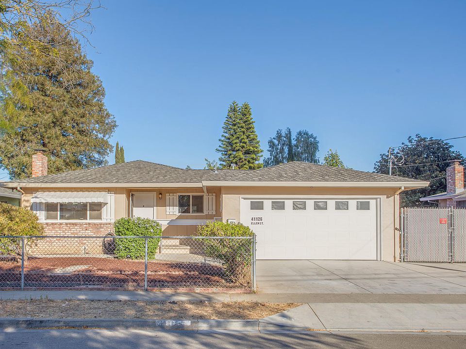 Located in the sought after Irvington District in Fremont, this charming ranch home welcomes you to a large living room that can also be a formal dining area ... with a fireplace for that touch of elegance. There are three spacious bedrooms for those restful nights. An air conditioning unit is provided in the master bedroom. The remodeled contemporary styled kitchen features new cabinets and new appliances: stainless steel double oven, double bowl sink, electric range cook top, recessed lighting. The kitchen opens up to a wide family room that feature beams adding to the character of the home. This great family area leads you to the sun room inviting you to take it easy. It is overlooking the backyard and fruit trees: persimmon, plum, orange - they bear so much fruit that the neighbors get to enjoy these, too. Of course, there is a cherry tree whose fruits are first dibs to the squirrels that play around the back. By the way, the front yard fence hold up several red seedless grape vines, bunches of grapes are now ripe for the picking. Other home features: all new floors, 3 year old roof with 47 year manufacturer's warranty remaining, tankless water heater, air conditioning unit also in family room, new subpanel 100A capacity, water collection system, jet bathtub in hallway bathroom, copper plumbing. All work permitted.