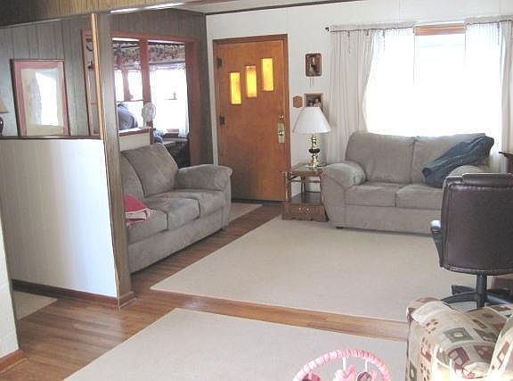 Spacious and well maintained. Home was originally a 3 bedroom, one bedroom was opened and added to the living room space to give it a larger airy area. Updated energy efficient furnace and central air. Oak hardwood floors, sliding glass door opens to large rear deck. Updated thermo windows, newer leaf guard gutter and downspouts. Rebuilt stoops, steps, front sidewalk. New garden shed. Fenced yard, quiet cul-de-sac street.