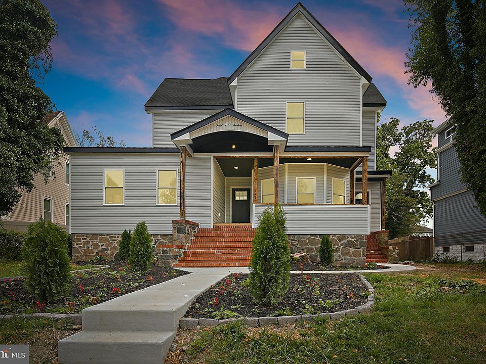 Quality, style and relaxed comfort are presented in a perfectly serene and natural setting with this totally updated five bedroom, two and a half bath colonial. The exterior has new siding, with crisp black trim with a new, welcoming front porch, roof and windows. This lovely home has been renovated from 1st to 3rd floor WITH permits. The home is renovated to meticulous standards which features luminous hardwood floors, a new custom white kitchen with custom counters, stainless appliances and accent walls. Refined bathrooms with new vanities, tubs and designer-inspired tiles. Large, fenced yard with a large deck to enjoy your evenings. Property has dual zoned heating / cooling system to control all levels to your liking.