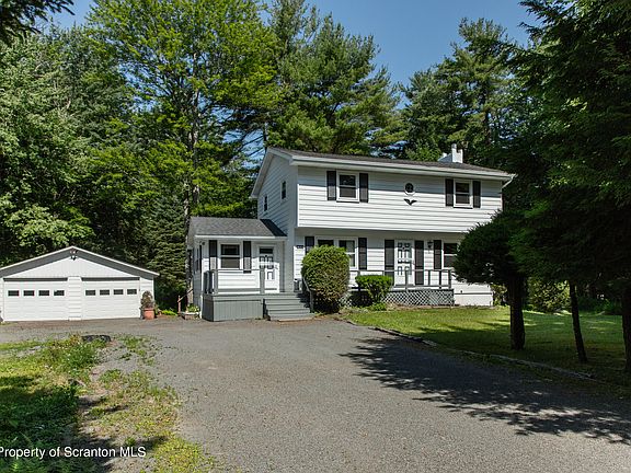 Welcome to your dream home nestled in the heart of the picturesque Pocono Mountains. This charming 4-bedroom, 1.5-bathroom colonial residence in Blakeslee, PA, offers the perfect blend of classic elegance and modern convenience on a spacious one-acre lot. Featuring beautiful hardwood floors throughout both levels, currently encompassed by carpeting on the first floor, you have the option to remove and refinish the hardwood to reveal its timeless appeal. Relax in the enclosed porch, complete with a propane wall-mounted heater, providing a cozy space to enjoy year-round. The detached 2-car garage with a side shed provides ample parking and storage, while the walk-out partially finished basement offers additional living space and endless customization possibilities. The sprawling one-acre lot provides a serene and private retreat, perfect for outdoor activities, gardening, or simply enjoying the natural beauty of the Pocono Mountains. Situated in a peaceful, friendly neighborhood, this property is a rare find, offering a perfect blend of rural tranquility and easy access to local amenities. Don't miss the opportunity to make this charming colonial home your own and step into the lifestyle you've been dreaming of!Listing Agent is a relative of the estate