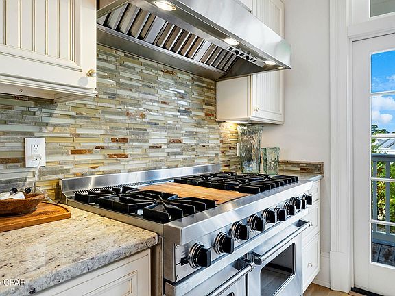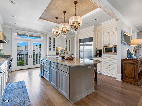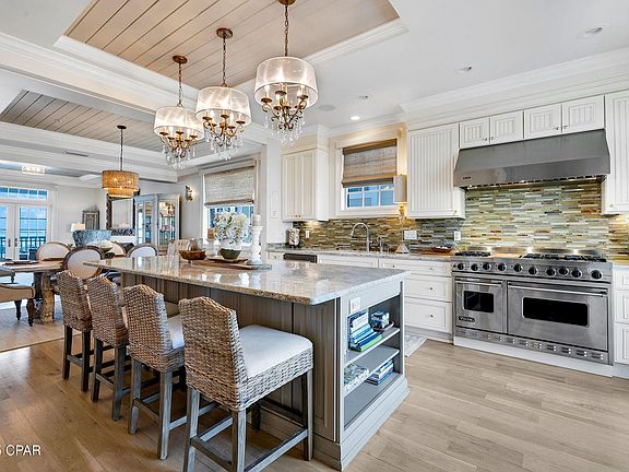 Experience the pinnacle of waterfront luxury in this extraordinary penthouse condo, boasting nearly 4,000 square feet of elevated living space with breathtaking panoramic views of St. Andrews Bay. Tucked within the exclusive gated enclave of Waterhaven on the east end of Panama City Beach, this residence redefines coastal elegance with a private 15x35' boat slip equipped with water, electric, and a 10,000 lb lift—perfect for the avid boater seeking seamless access to the Gulf. Thoughtfully designed for refined entertaining, the open floor plan features a chef's dream kitchen complete with a Sub-Zero refrigerator, professional-grade Viking six-burner gas stove with double oven, prep kitchen, serving bar, and an expansive granite island—all flowing effortlessly into the dining and living spaces with rich hardwood floors and uninterrupted bayfront views.