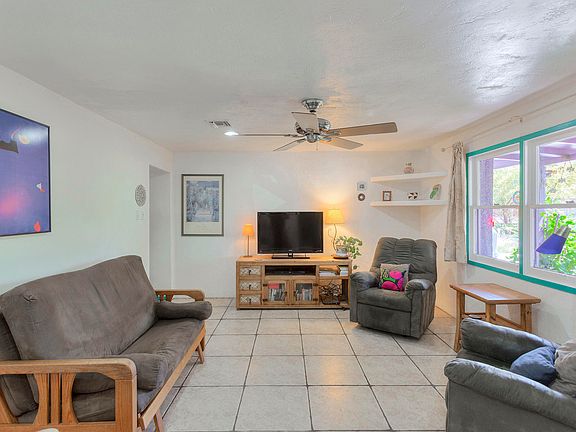 Wonderful Brentwood location & the most charm for the money you will find in Central Tucson! This move-in ready home features 3 split BR's w/2 baths in main house, plus a fabulous, privacy walled rear yard w/multiple covered & uncovered patios for great entertaining. Newer permitted 1/1 studio w/ separate outside entrance could be in-law suite, artist studio, music room, band practice space, etc. Delightful kitchen w/tons of cabinets & nice upgraded SS appliances. This home includes a lot of nice updates throughout, including tile floors, newer roof, Rennai tankless water heater, many replacement windows, dual cooling in original main home. Huge lot includes many trees including fruits, 2-500 gallon rainwater harvesting tanks, blt-in grill area, planting areas, lg storage/workshop bldg.