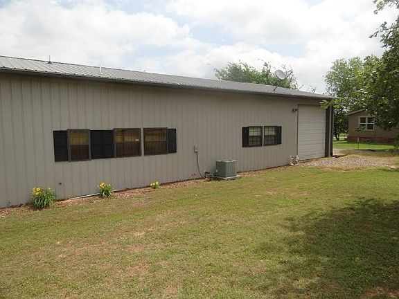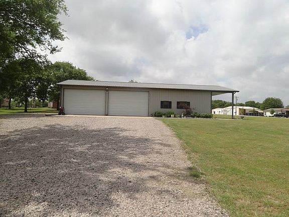 2 bedroom, 1 bath metal home on 1 acre corner lot. Beautiful landscaping with trees. Home interior is custom designed with granite countertop, stainless appliances, laminate wood floors throughout and 12' ceilings. Back part of home is a 30 x 35, 4 car garage with storage and water. East side of home is plumed for RV connections. Garage has drive thru door for easy loading and parking. Home is sold with all kitchen appliances, washer & dryer, dining table, set of seadoos & trailer.