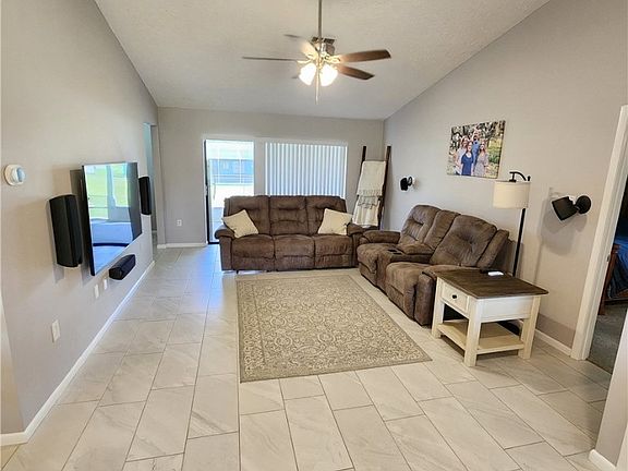 MOVE IN READY!! This neat and clean home is ready for a new family! You will be greeted with a cozy front porch perfect for morning coffee. This 2 bedroom, 2 bath split floor plan has newer tile throughout the main home with carpet in the bedrooms. The home offers an abundance of natural light, high ceilings in the living room, and freshly painted with an inviting color. The kitchen offers a breakfast nook, there is a separate dining area as well. The master bedroom is ample in size with a upgraded ensuite, double vanity sinks, a large walk in closet off the master bath. Rear screened in porch overlooks the fenced in backyard. The roof is 2022, AC 2023 and windows have been replaced in 2022...
