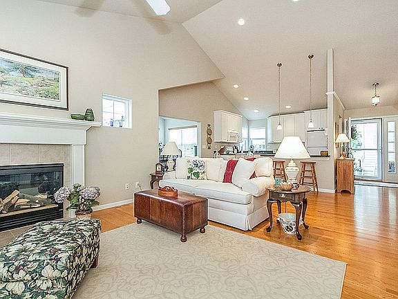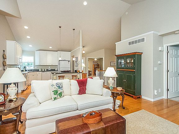 Stunning Sattler built ZERO LOTLINE condo NE! WOW factors: wood flooring, vaulted ceilings and large windows capturing private backyard views and flanking the gas fireplace. White kitchen cabinetry, spacious counters, a corner sink, bright sun room (currently used as formal dining room)Trex deck overlooking flower gardens and privacy hedges. Beautiful master bedroom with large window overlooking peaceful and private backyard, master bath with WALK-IN shower, double sinks and walk-in closet. Steps away from the main level second bath is another bedroom with double doors - ideal for den or study. Fabulous lower level with daylight windows, family room, 3rd full bath, large bedroom with walk in closet and lots of storage space! 1 dog (under 40lbs), 1 cat allowed.