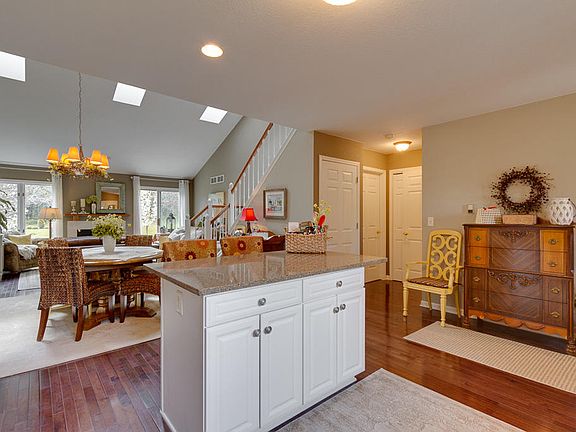 Beautiful updated condo in sought after Prairie Village. Spacious open floor plan. Crisp white woodwork, granite counters, subway tile backsplash & hardwood floors. Immaculate condition. Cathedral ceilings open to the second flr. First floor master suite, first flr laundry rm. 2nd flr offers a bedroom plus a loft with closet. Full basement. The views to the backyard are gorgeous. Check out the photos.