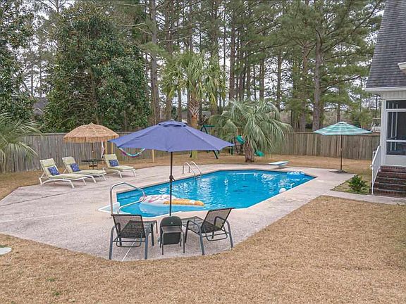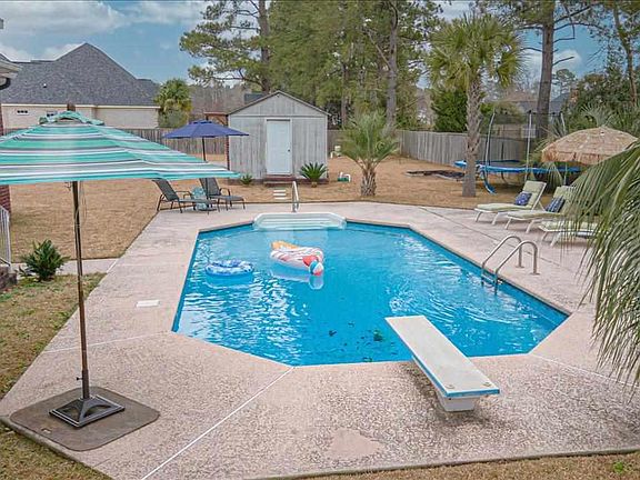 Welcome home to the sought after neighborhood of Wedgewood! This standout home is full of desirable features including a POOL and your own private oasis! Situated on over a half acre lot, there is an abundance of space for relaxing, entertaining, and playing! With 5 bedrooms and 4 full bathrooms, this is the perfect family home. Interior features include: open floorplan, formal dining room, gorgeous hardwood floors, gas fireplace with built-in shelving and glass decorative cabinets, tall ceilings with enhanced molding and double tray ceiling in the living room, built in music speakers (outside, kitchen, owners suite), tankless hot water heater, and fresh paint in multiple rooms. The owners suite includes hardwood floors, double tray ceiling, large bay windows and a walk-in closet. The kitchen includes a large eat-in sitting area, counter seating, stainless steel appliances, tile backsplash, and a pantry. Step outside to your own private backyard oasis. The exterior features: beautiful liner pool with diving board, large patio space with cool decking, storage building that also includes a separate bathroom, and a large screened in porch with stamped concrete and electrical hook up for a generator. All of this is situated on over half an acre that is fully fenced with a double gate for access and a concrete basketball pad for playing. Don't delay in seeing this home, you are sure to love all that it has to offer!