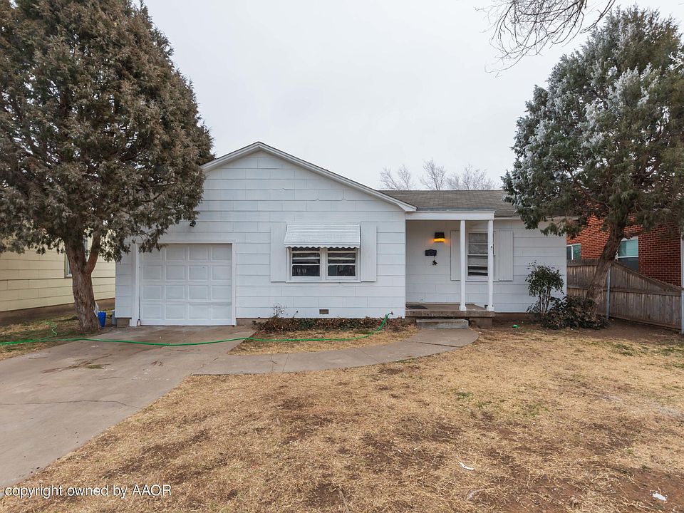 A lot of space for the money! Three bedrooms, 2 baths, 1 car garage on large lot. Nice sized living room with hardwood floors. Master bath has private 3/4 bath. Kitchen has pantry, and great cabinet storage. Dining area adjoins kitchen. Spacious laundry area with hanging bar for convenience. Newer electrical box and sewer line per seller. Fresh paint inside and out. Covered back patio. Central heat & air. New white Kitchenaid dishwasher, stove, & refridgerator coming soon! Take advantage of these low interest rates and start building some equity today!