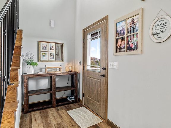 This home is dazzling from the moment you open the door. The main living area boasts a 19 foot ceiling w/ a loft above & a full brick electric FP. The kitchen is equipped w/ SS appliances, white cabinetry, island & window above the sink w/ a great view of the wooded acreage. Off the dining area is a MAINTENANCE FREE DECK that runs along the entire back of the home. Imagine nights enjoying a beverage while watching the many deer frolicking. Notice how the HARDWOOD FLOORING continues down the hall into all three bedrooms. Upstairs is the primary w/ a generous walk in closet & bathroom. The loft space can be utilized for an office, library, or play area. Above the garage is the LARGE 5th bedroom with its own private staircase. LL offers an 2nd kitchen with seating around peninsula & rec area w/ a gas FP. 2x6 wall construction w/ blown in insulation. 440 amp service! Additional Rooms: Mud Room