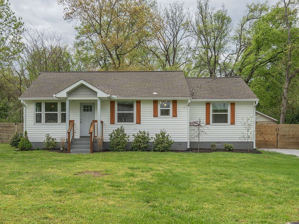 Accepting Back Up Offers. Rare opportunity!! 3/4 acre ~ partially wooded lot in the city. Light and bright. The house was completely renovated in 2020. ALL NEW kitchen cabinets, quartz counters, stainless steel appliances, light fixtures, bathroom vanities and tile. NEW electric and plumbing. Primary bedroom suite with tile step-in shower. Separate pantry / laundry room. NO CARPET, only Hardwood and wood LVP throughout the house. Pull down blinds. Enjoy wildlife like deer and owls in your private wooded sanctuary. Privacy fence 2021. Plenty of room to build a garage or add-on to the house. The covered front porch, wooden shutters and many newly planted trees / shrubs add the curb appeal. You'll love entertaining on your back deck, while overlooking the beautifully landscaped backyard. Live within one mile to music venues, Eastside Bowl, El Fuego, ML Rose, and tons more East Nashville eateries and shopping! Easy commute to downtown~ Ellington Pkwy 3 minutes away. Broadway 10 minutes.