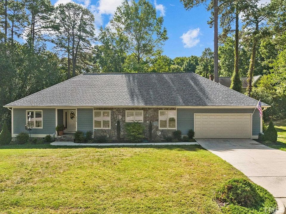 This extremely well-maintained single-story home on a quiet cul-de-sac in the heart of Raleigh's Leesville community has three spacious bedrooms and two bathrooms with vaulted ceilings. Warm & welcoming, this home offers a natural gas fireplace, range, heat, large closets, washer and dryer, two car garage and a beautiful deck overlooking a private backyard. 3-year-old roof, new hardi-siding, new carpet & new gutter w/ guards. Excellent location w/ easy access to Leesville schools and close to the Glenwood Avenue area. Renter is responsible for gas, electric, water, garbage, internet and cable. Last months rent due at signing. No smoking allowed. Small dogs (up to 20 pounds) permitted.